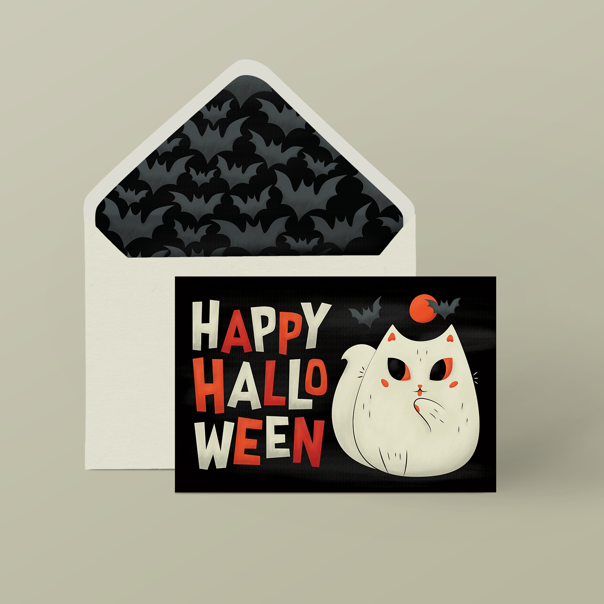 Halloween greeting card and custom lined envelope.
